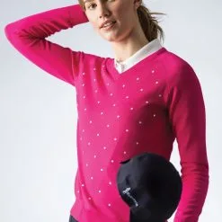 Glenmuir Ladies V Neck Embroidered Polka Dot Cotton Golf Sweater Milly